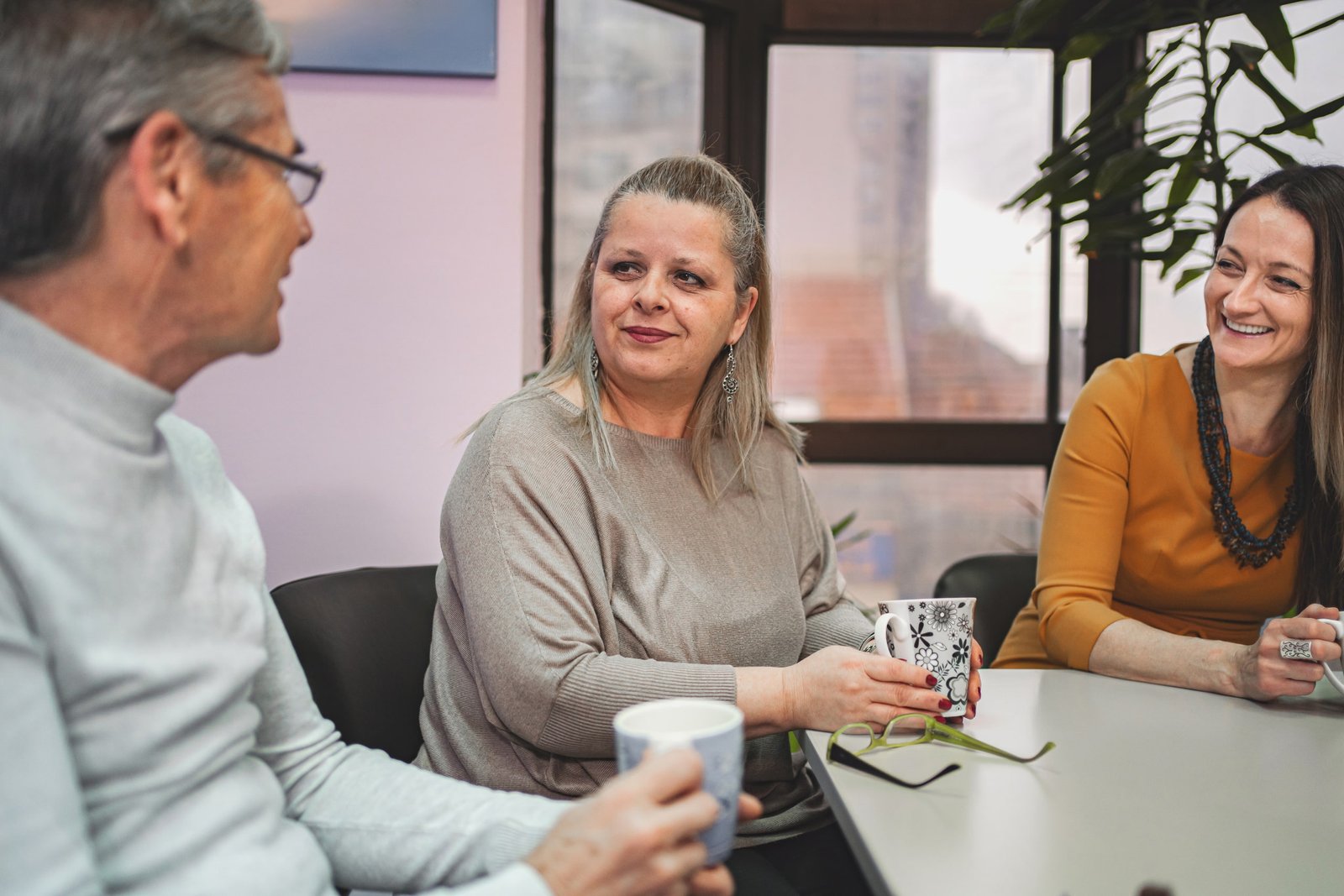 Adultos tomando notas y participando en actividades escritas durante una clase de inglés para adultos en un aula iluminada, enfocados en el aprendizaje activo y el desarrollo de habilidades lingüísticas.
